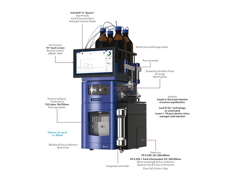 PF-5.250 saflaştırma sistemi laboratuvarınızda vazgeçilmez bir yardımcı olacak. Tüm ihtiyaçlarınızı karşılamak için detaylı olarak düşünülmüştür ve çalışırken kendinize soracağınız tek soru, bu cihaz olmadan nasıl başardığınızdır.Normal veya ters fazda, flash kromatografi veya preparatif HPLC'de birden fazla saflaştırmayı her zaman başlatmaya hazırdır. 250 bar ve 250 mL/dak ile rutin saflaştırmadan karmaşık saflaştırmalara kadar her şeyi yapabilir.Güvenle saflaştırmalar yapın. Bu cihaz, minimum bakım ile haftada 7 gün, 24 saat çalışacak şekilde tasarlanmıştır.Kolonların, kuru yüklerin, enjeksiyon döngülerinin ve rafların otomatik tespiti için RFID teknolojisine sahip sayısız sızıntı dedektörü ile donatılmıştır. Bu cihaz, yoğun teknolojisi ile dikkat çeker.Sentez adımlarına odaklanmanızı sağlar çünkü saflaştırmalar yapmak hiç bu kadar kolay olmamıştı.