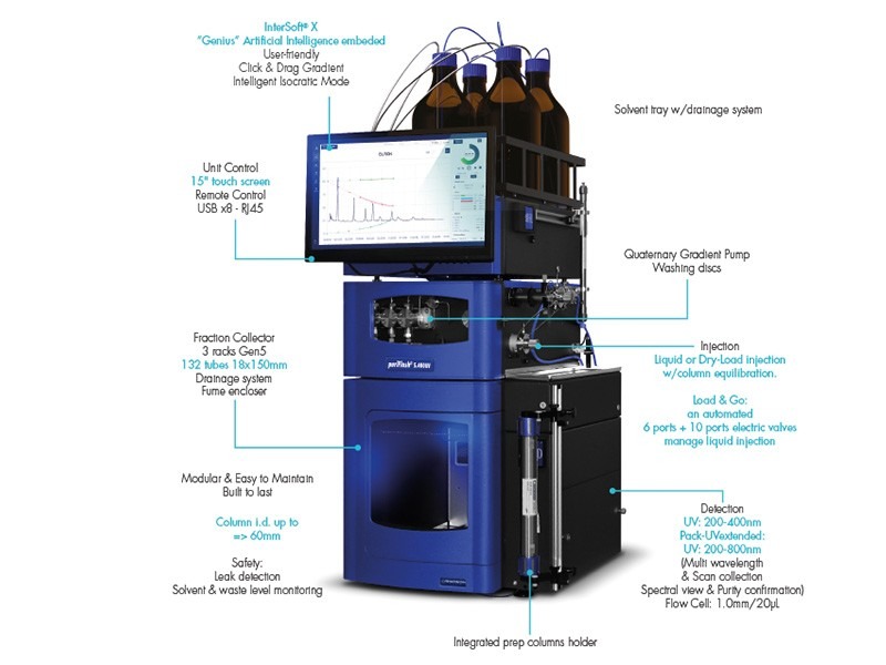 PF-5.400-UV, aynı cihazda 7.8 mm çaplı analitik kolonda yöntem geliştirme ve ardından preparatif HPLC kolonda saflaştırma yapmak için tasarlanmış bir sistemdir. Eşi benzeri olmayan çalışma konforunun tadını çıkarın.puriFlash® 5.400-UV'nin büyük 15” ekranı ve sistemin nerede olursanız olun uzaktan izlenebilme imkanı, size mükemmel bir çalışma konforu sağlar ve saflaştırmalarınızı her zaman gözlem altında tutmanızı sağlar. Minimal alan gereksinimleri olan bir sistem geliştirmenin bizi büyük düşünmekten alıkoymadığını unutmayın.